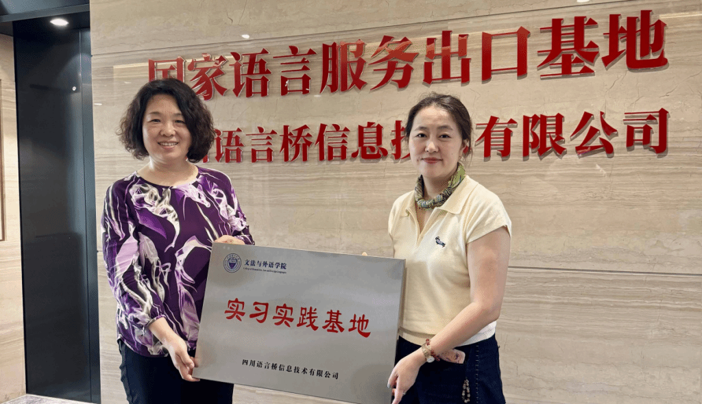 学院代表团第三站来到国家语言服务出口基地——四川语言桥信息技术有限公司,了解其作为国内外语服务龙头企业的业务分布与服务模式。代表团体验了其最新“AI系统”与“专家系统”协同服务模式,段荣娟院长、张海燕副院长介绍了学院MTI翻译硕士专业的教学与科研成果,双方就产教深度融合、聘请行业导师、共建实习实践基地等方面达成共识,并举行实习基地授牌,确立后续合作方向。